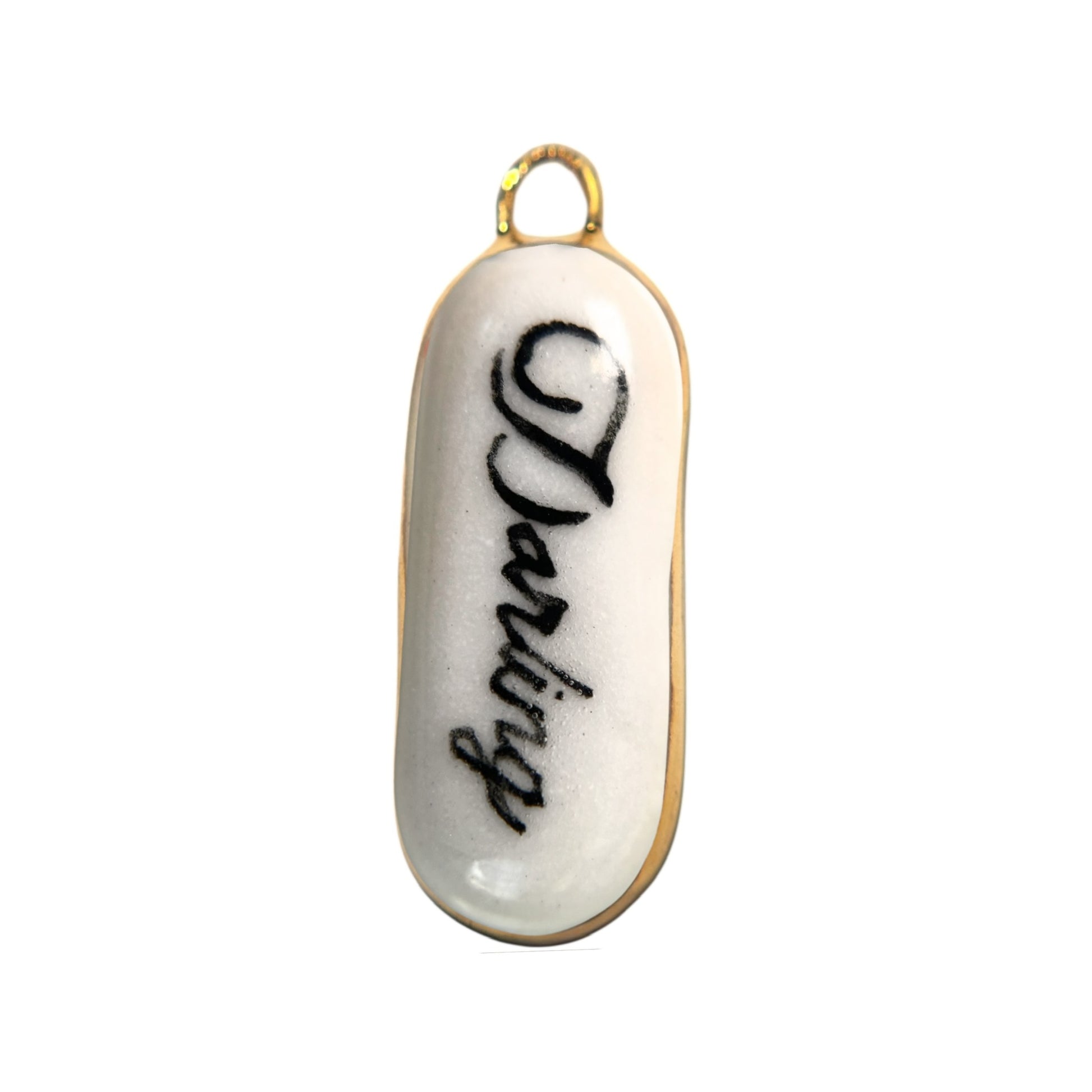 Think of it as a miniature treasure—best worn with care. Treat it like fine china: delicate, beautiful, and meant to be handled gently. While the porcelain and gold-filled components will not tarnish, the 22k gold luster is a delicate finish that can wear over time if exposed to rough handling, friction, or harsh chemicals.