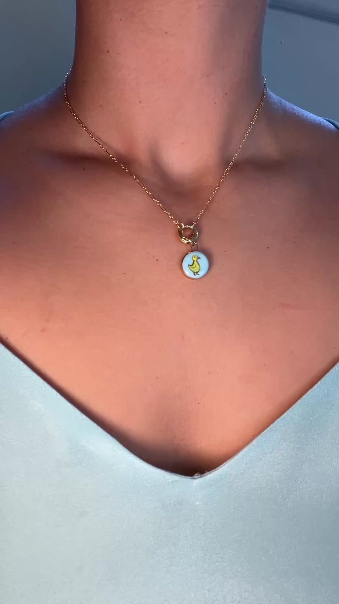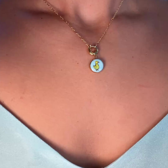 Think of it as a miniature treasure—best worn with care. Treat it like fine china: delicate, beautiful, and meant to be handled gently. While the porcelain and gold-filled components will not tarnish, the 22k gold luster is a delicate finish that can wear over time if exposed to rough handling, friction, or harsh chemicals.