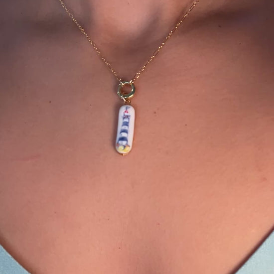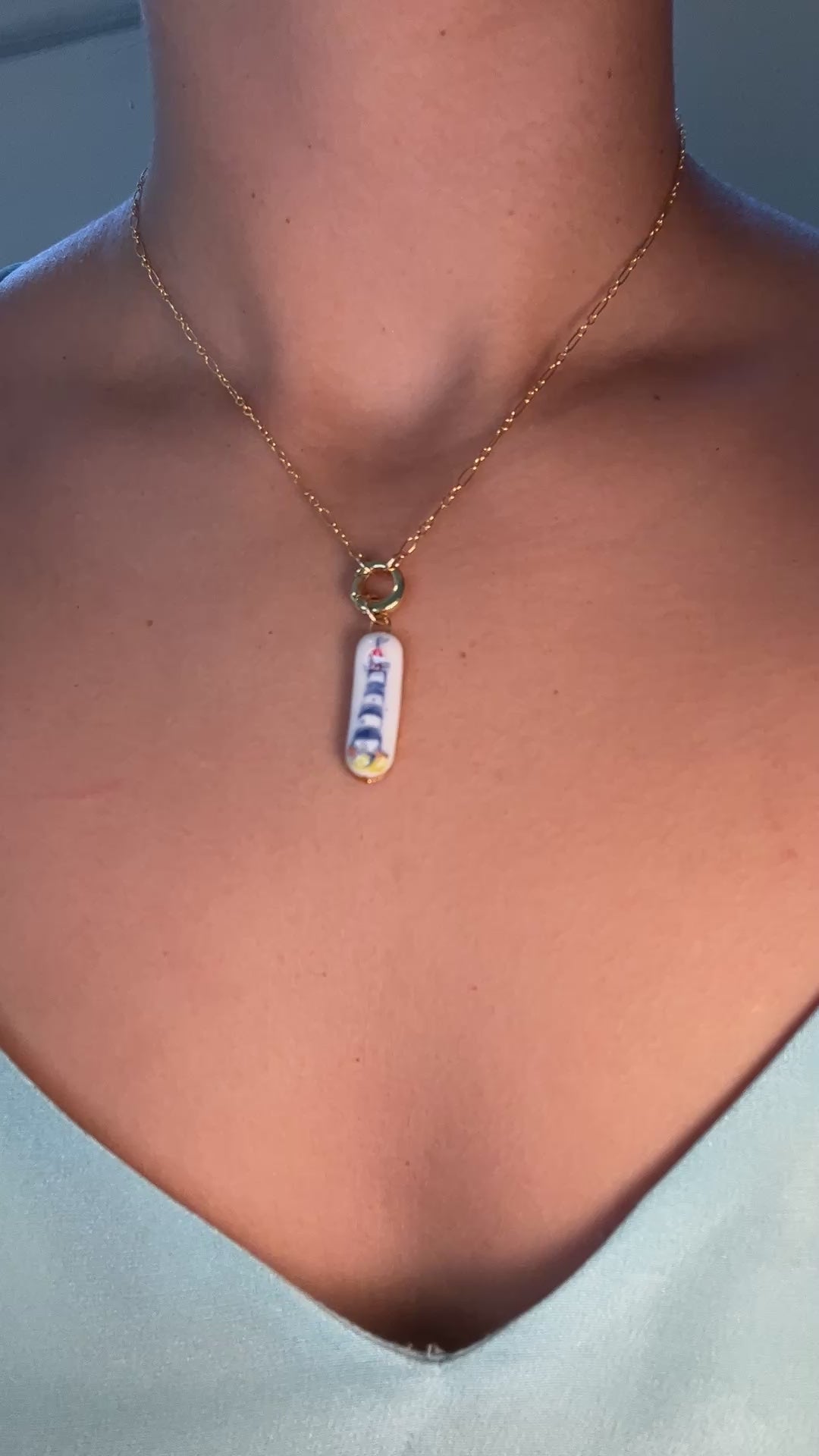 Think of it as a miniature treasure—best worn with care. Treat it like fine china: delicate, beautiful, and meant to be handled gently. While the porcelain and gold-filled components will not tarnish, the 22k gold luster is a delicate finish that can wear over time if exposed to rough handling, friction, or harsh chemicals.