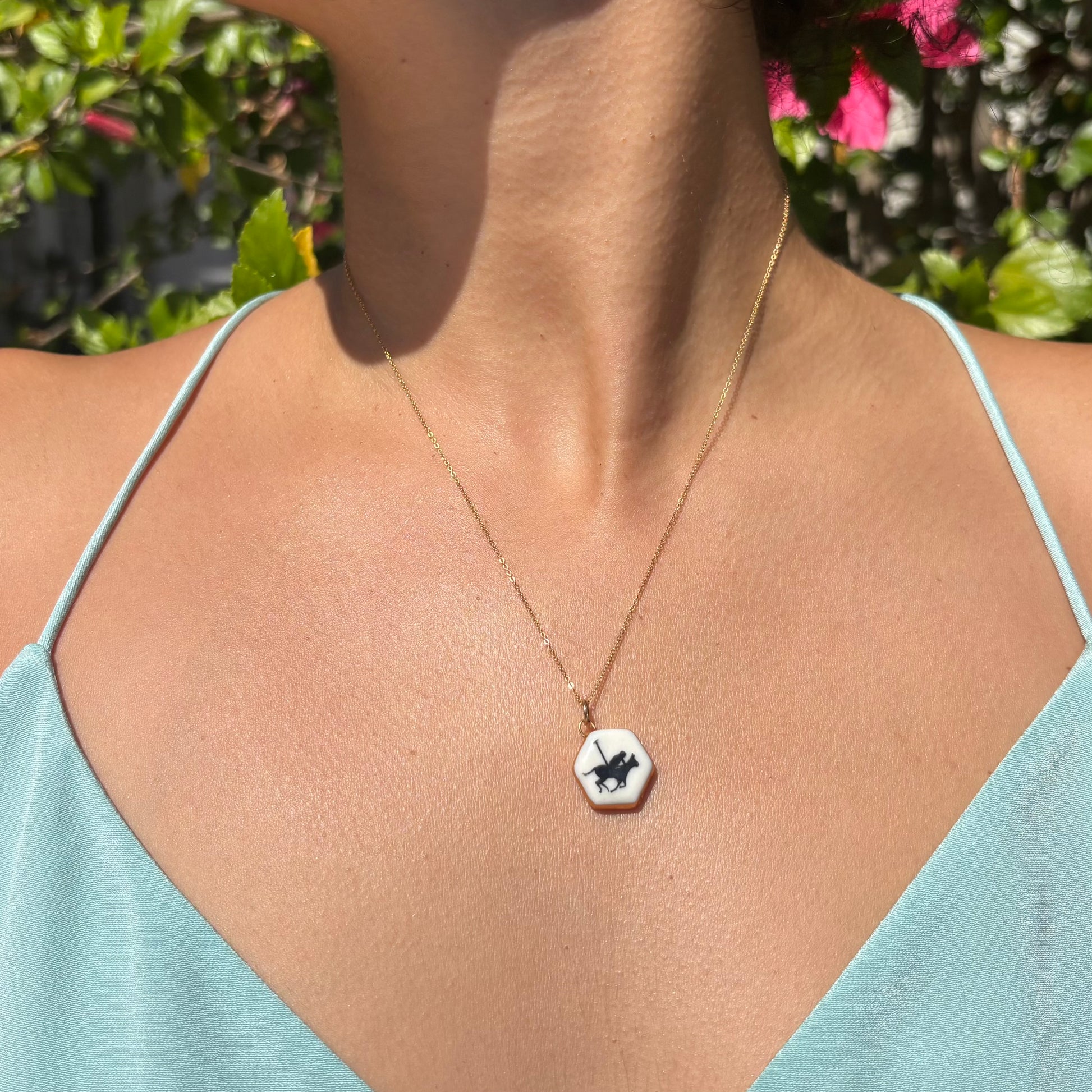 Think of it as a miniature treasure—best worn with care. Treat it like fine china: delicate, beautiful, and meant to be handled gently. While the porcelain and gold-filled components will not tarnish, the 22k gold luster is a delicate finish that can wear over time if exposed to rough handling, friction, or harsh chemicals.